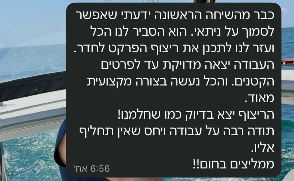 "העבודה שלנו היא לא רק מקצוע, היא תשוקה. כל פרויקט שאנחנו לוקחים על עצמנו הוא תוצר של אהבה ואיכות שאין כמוה."
